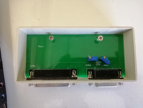 但是光是分壓電路,還是不夠的,因為控制卡接口和新電源接口還不一致,需要制作個像樣的,可靠的轉接器,才能交付客戶。我們專門畫了版圖,到電子市場找了合適的盒子,制版,焊接,調試。終于,如下圖: