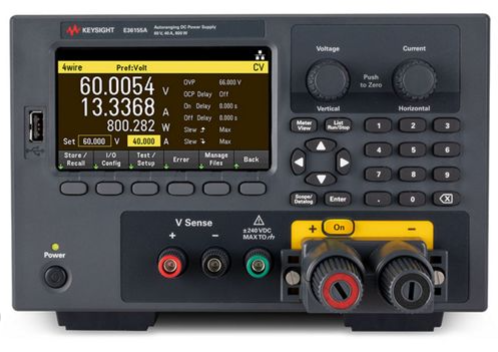 Keysight E36150 系列自動量程臺式直流電源包含兩個型號,其單通道輸出功率可達 800 W。 E36150 系列可輸出高達 60 V 的電壓和 80 A 的電流,其可用功率足以滿足您的測試需求。 它配備了新型可拆卸前固定連接,能夠承受 80 A 的最大輸出電流,同時完全符合國際電工委員會(IEC)61010 安全標準的要求。